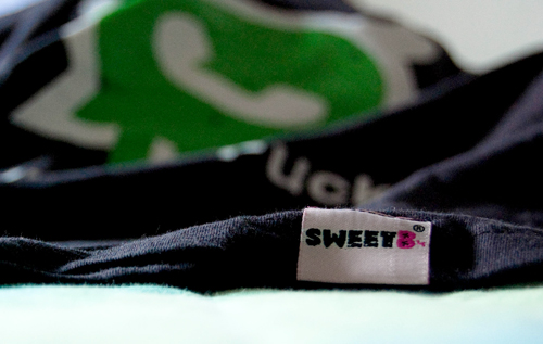 Quando decidi di realizzare delle magliette e di farne il tuo business, cominci a farti tremila seghe mentali sui lavaggi, la resa del colore, la comodità del materiale, il peso, la morbidezza. In tal modo diventi espertissimo di materiali, cotoni ecc. e poi cominci a chiederti quanto frega alla gente di questa roba, nel momento in cui entra in un negozio e vede la t-shirt per la prima volta. Credo che siamo tutti concordi nel rispondere che nessuno si fa queste domande, quando va in giro a comprare una maglietta. Ma c’era un problema che ci ponevamo più di qualunque altro: SweetB è il veicolo di un messaggio e deve quantomeno durare. Oltretutto spendiamo la nostra vita a sbraitare contro lo stile di vita di oggi, basato su cose finte, infime, del valore enorme che viene dato alle cose sbagliate: come potevamo produrre delle magliette di cotone FINTO con la stampa che veniva via al primo giro in lavatrice? Perciò le t-shirt SweetB sono tutte cotone al 100% (era il minimo) e possono essere trattate nel peggiore dei modi. Sopravvivranno a tutto.