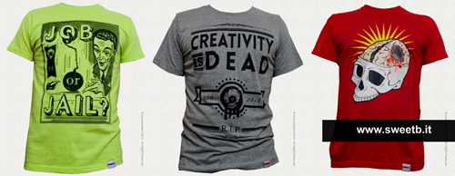 Ovviamente in ogni maglietta c’è un po’ della mia storia, rievoca qualcosa che mi è capitato o a cui ho assistito. JoborJail, ad esempio, è stata concepita in seguito a un ingiusto licenziamento che ho subito anni fa; CreativityisDead, invece, vero e proprio necrologio delle idee, racconta della nostra voglia di esprimerci attraverso la creatività e di come la società cerchi invece di reprimere tutto questo (da qui l’idea del necrologio ed i colori scelti per la maglia). Se dovessi dirne una su tutte sceglierei DemocraZy, perché è quella che più delle altre esprime la mia visione della democrazia del mondo moderno, basato essenzialmente sul denaro e sulla violenza (fisica, come raffigurato dalla pistola, ma anche e soprattutto psicologica).