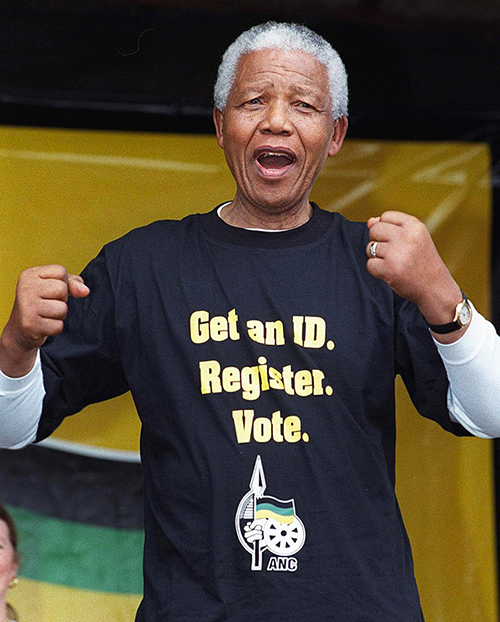 La prima, scattata intorno al 1950, mostra Mandela in tenuta da boxe, probabilmente nella sua palestra di Soweto; la seconda, del 1998, con lo slogan “Get an ID. Register. Vote.” a un raduno del suo partito durante la campagna per le elezioni presidenziali del 1999; la terza, del 2002, con il messaggio sociale “HIV Positive”, durante una campagna di sensibilizzazione contro la diffusione dell’Aids.