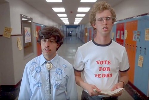 Due amici, uno americano e uno messicano, pronti per una improbabile elezione scolastica. La t-shirt “Vote for Pedro” indossata da Napoleon e la sua indimenticabile esibizione, sulle note di Just Dance di Jamiroquai, faranno il resto.